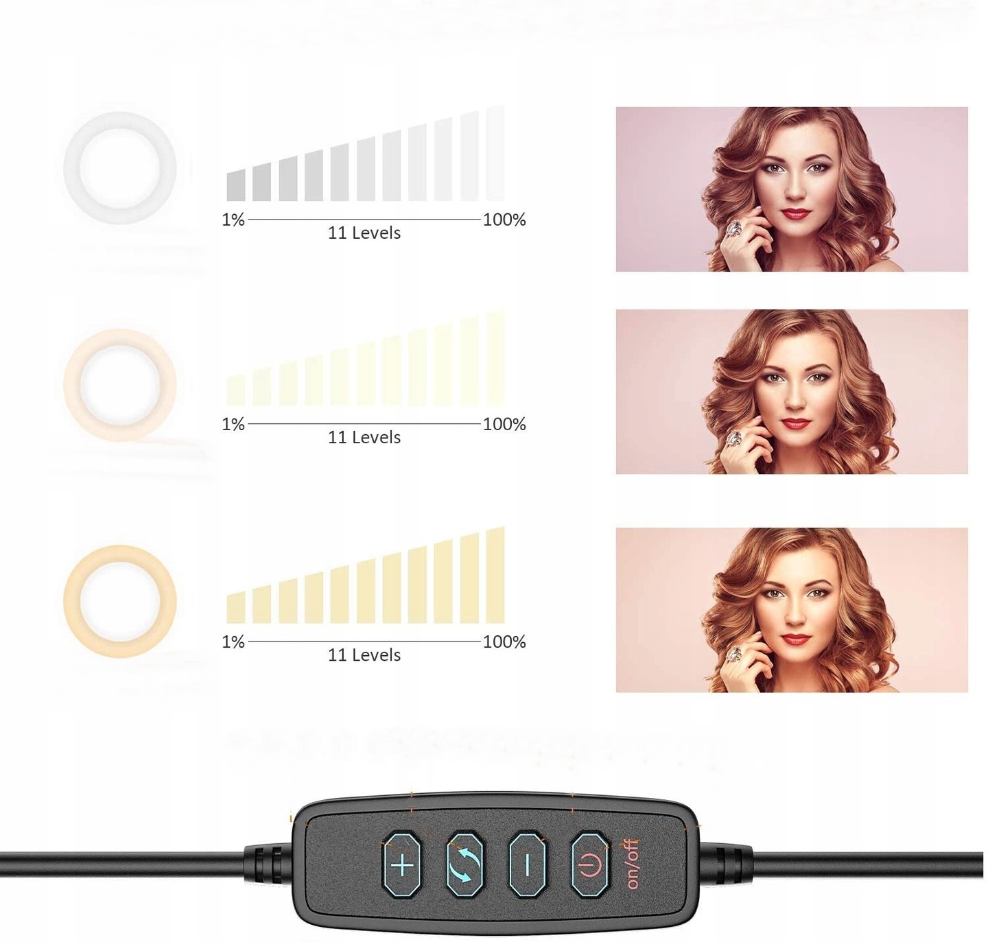 - 3 кольори та 11 режимів яскравості: 6-дюймовий світлодіодний кільцевий ліхтар з підставкою має 11 регульованих рівнів яскравості, задовольняє всі ваші потреби в різних обставинах і 3 режими освітлення білий/нейтрально білий/тепле світло (3000-6000K), ви можете вибрати найбільш підходящий ефект освітлення відповідно до вашого настрою та вподобань, що робить його ідеальний вибір для фотографів, користувачів YouTube тощо.