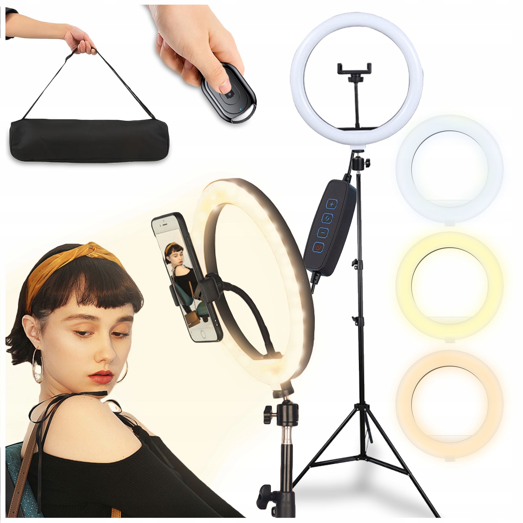 Професійна кільцева лампа зі штативом є необхідним інструментом для тих, хто займається фотографією, макіяжем, створенням відео чи трансляцією. Завдяки своїй універсальності та високій якості виготовлення цей світильник забезпечить вам ідеальне освітлення в будь-якій ситуації!