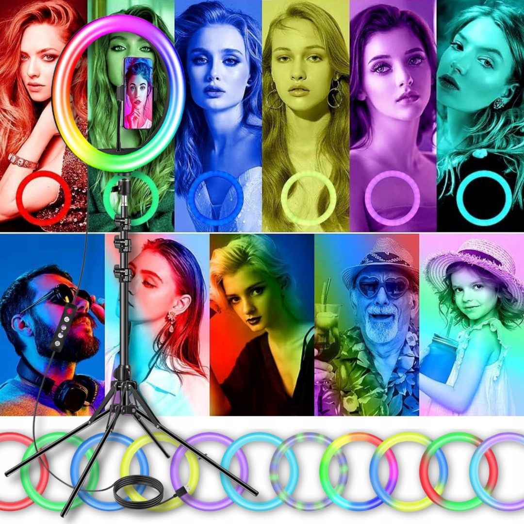 Сучасна LGB LED Ring Lamp -це незамінний інструмент для фотографів, впливових, виготовлення художників та всіх, хто хоче отримати ідеальне освітлення у будь -якій ситуації. Завдяки можливість змінити колір світла, регулювання інтенсивності та побудованих ефектів rgb , ви можете адаптувати світло до своїх потреб, створюючи професійні та атмосферні фотографії та відео .
