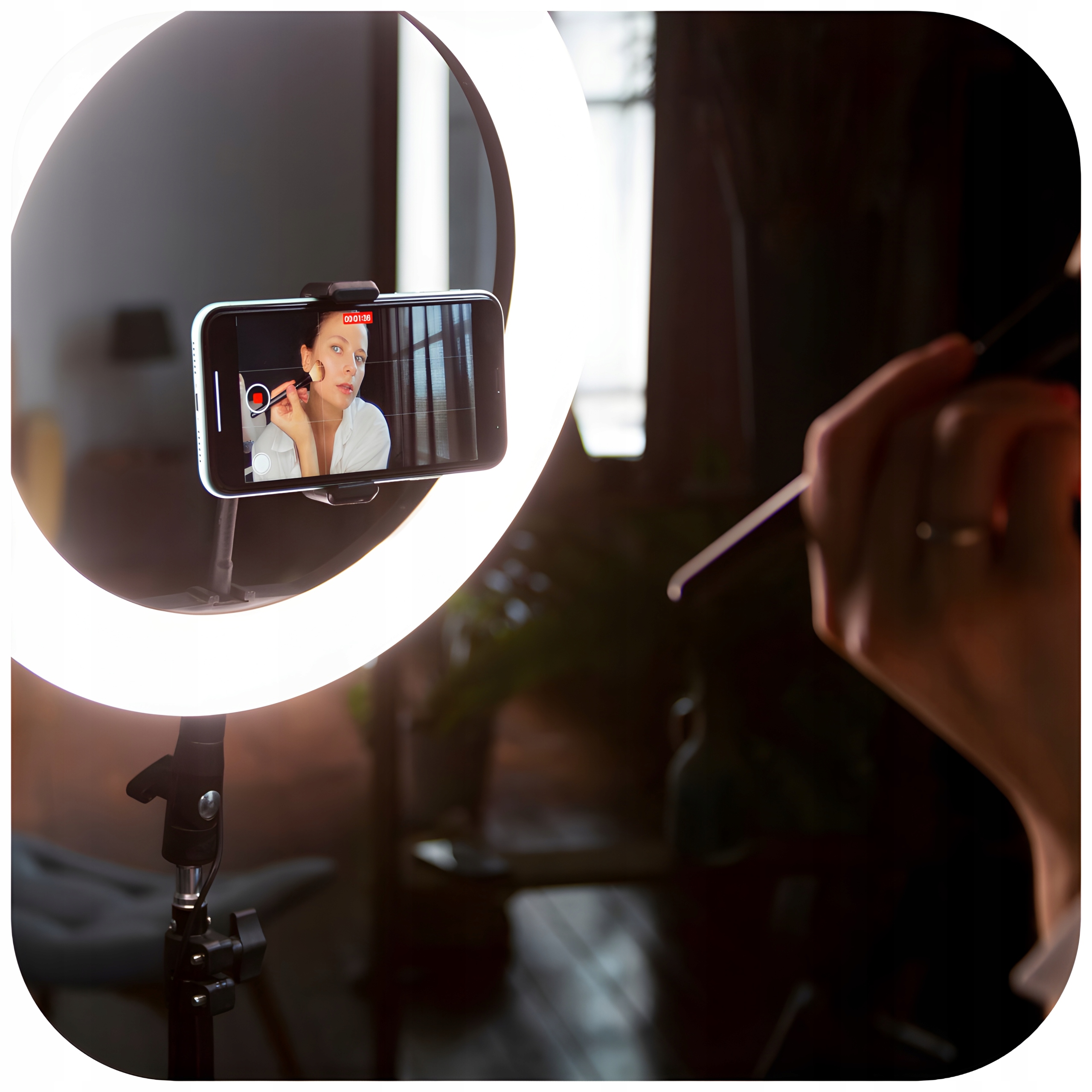Наша лампа забезпечує відмінне, навіть світло, усунення тіней та вдосконалення якості зображення. Для творців вмісту, влогерів, художників -макіяжу та фотографів.