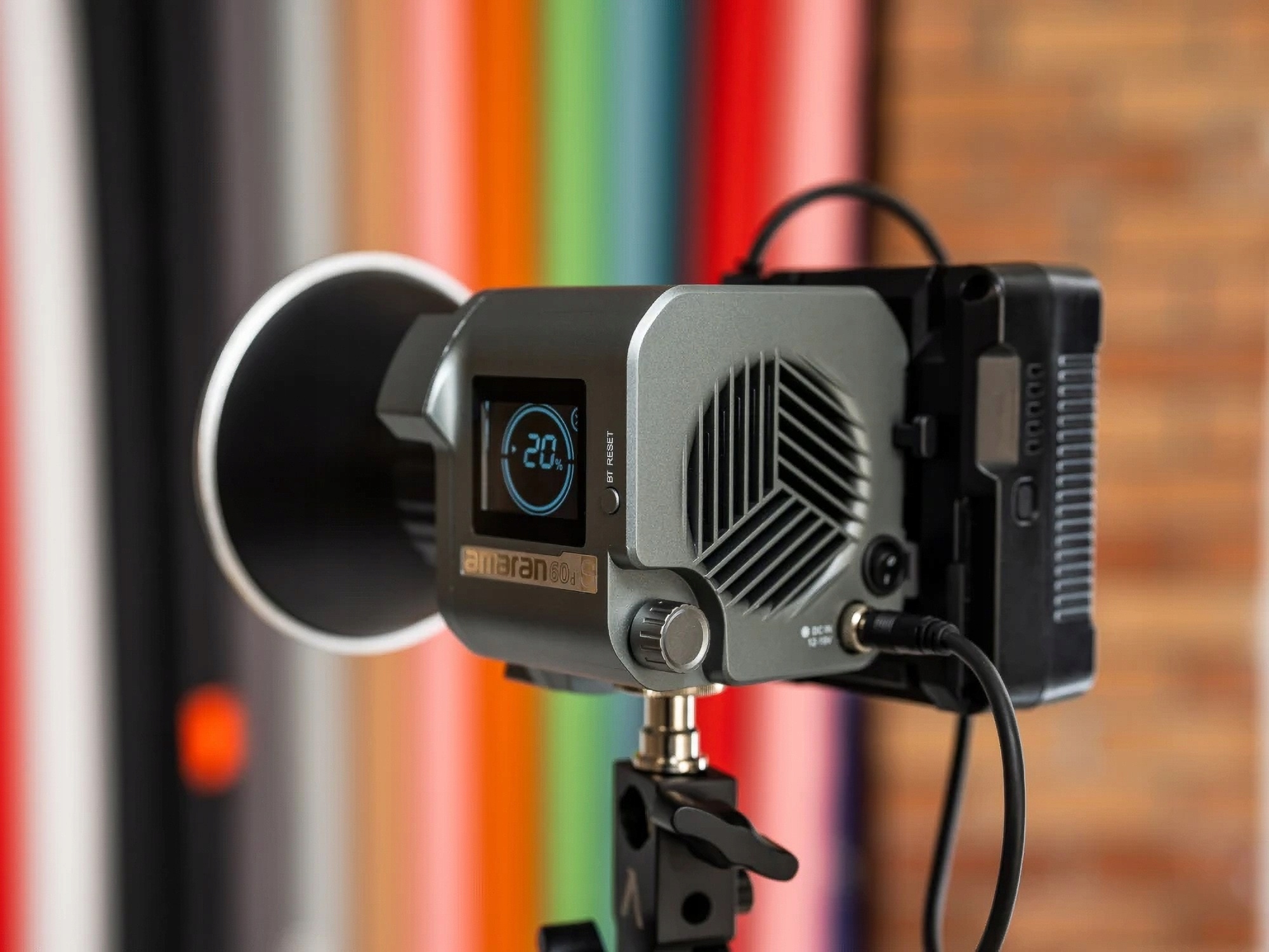 - Можливість постачання лампи за допомогою акумуляторів V-lock / V-Mount (вам потрібно придбати відповідний кабель)