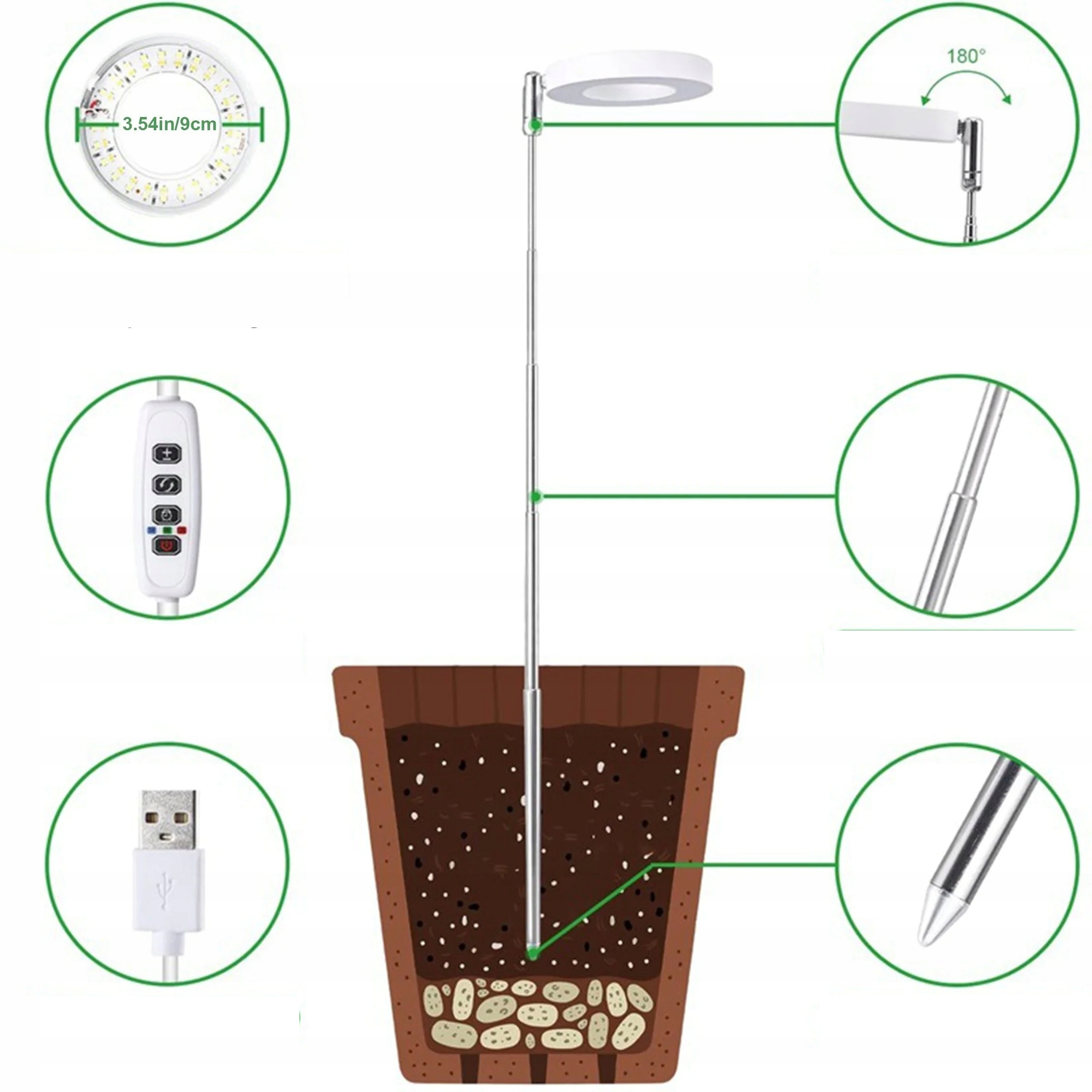 ⭐ світлодіодна лампа для освітлювальних рослин з телескопічним бумом та таймером - USB 5V