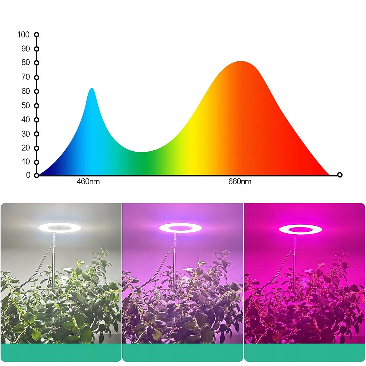 ✨【9 рівнів регулювання яскравості】Наше освітлення для росту рослин повного спектру має світлодіоди, розташовані по колу, що дозволяє вашим рослинам краще поглинати світло та рости здоровішими. Крім того, він має 9 регульованих рівнів яскравості (від 20% до 100%), що дозволяє адаптувати освітлення до різних видів рослин з різними вимогами до інтенсивності світла.