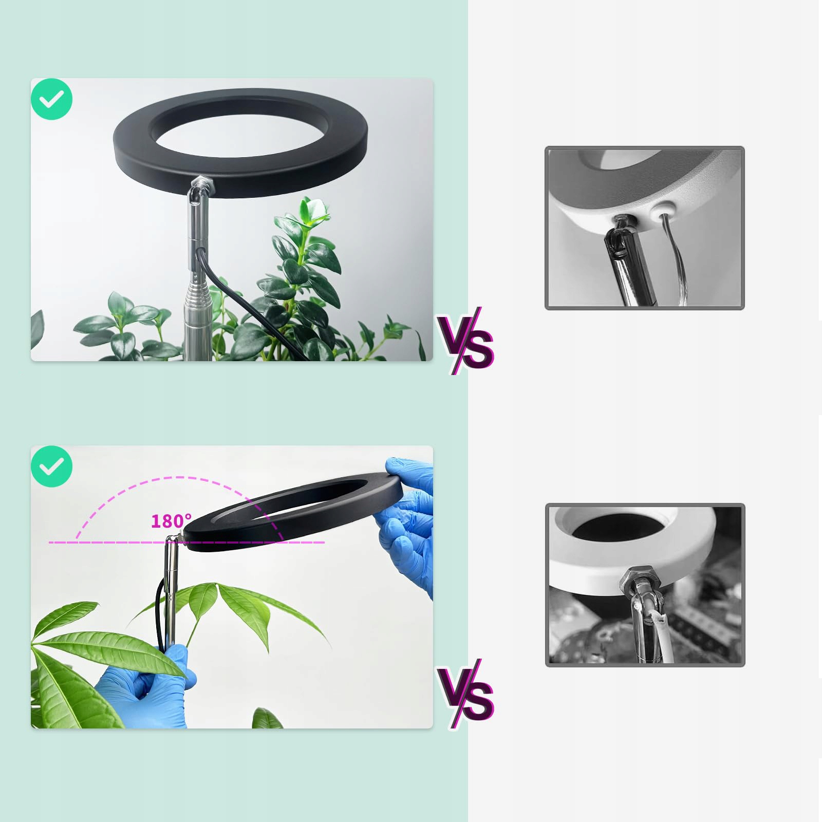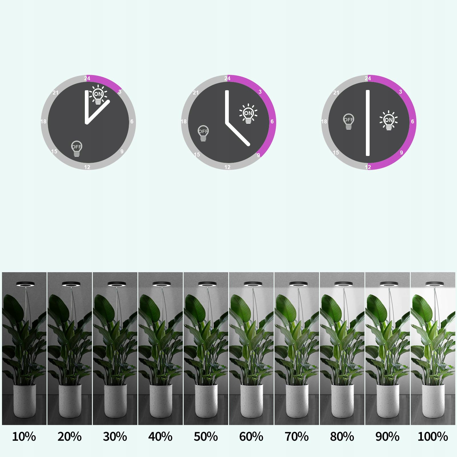 лампи для вирощування рослин мають встановлений таймер з 3-х прочитаною функцією циклу часу, який буде включений протягом 3/9/12 годин. Якщо джерело живлення підтримується, він може автоматично вмикатися та вимикати кожен день відповідно до ваших налаштувань. Halo Grow Light піклується про ваші рослини, коли ви перебуваєте на роботі чи у відпустці, легко та комфортно!