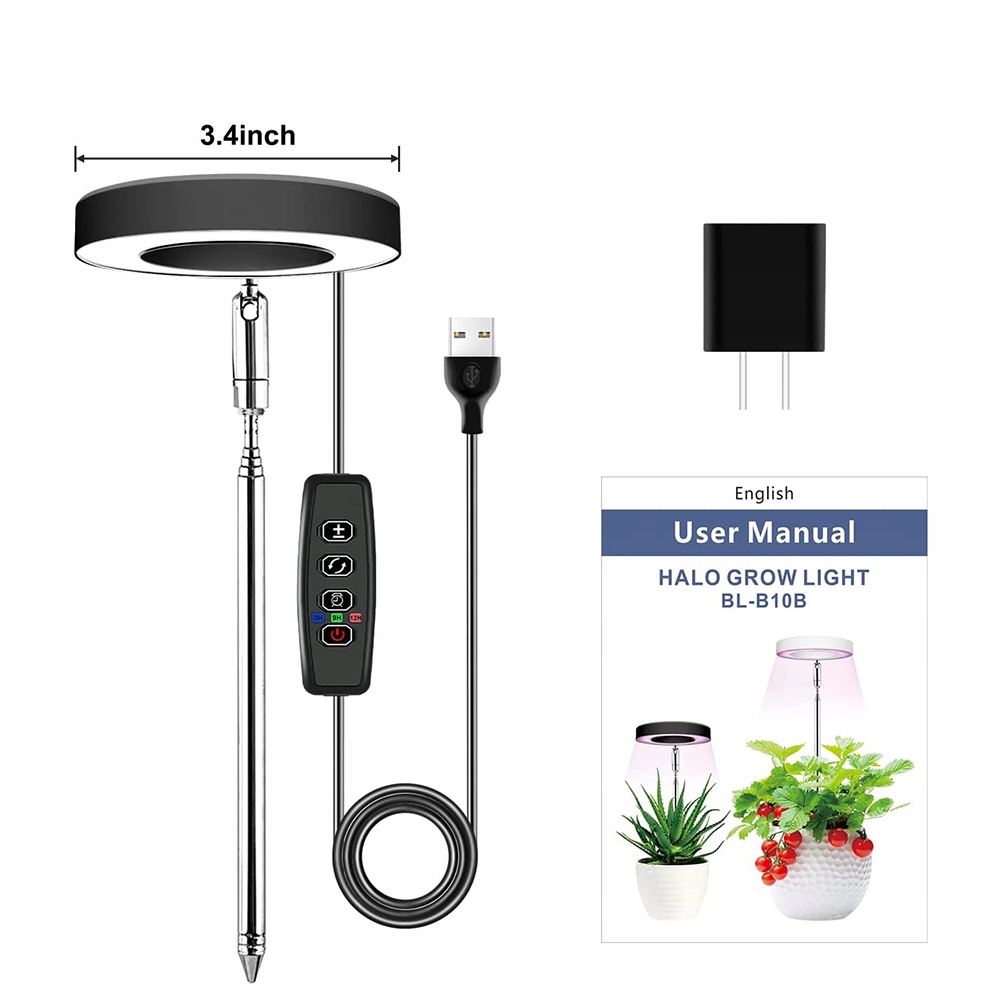 🌷【3 параметри таймера】: Лампа росту рослин має таймер, який налаштовано на 3 режими функції синхронізації циклу, яка триває 3/9/12 годин . Коли живлення зарезервовано, він може автоматично вмикатися та вимикатися щодня відповідно до ваших налаштувань. Доглядати за своїми рослинами, коли ви на роботі чи у відпустці, легко та зручно з Halo Grow Light!