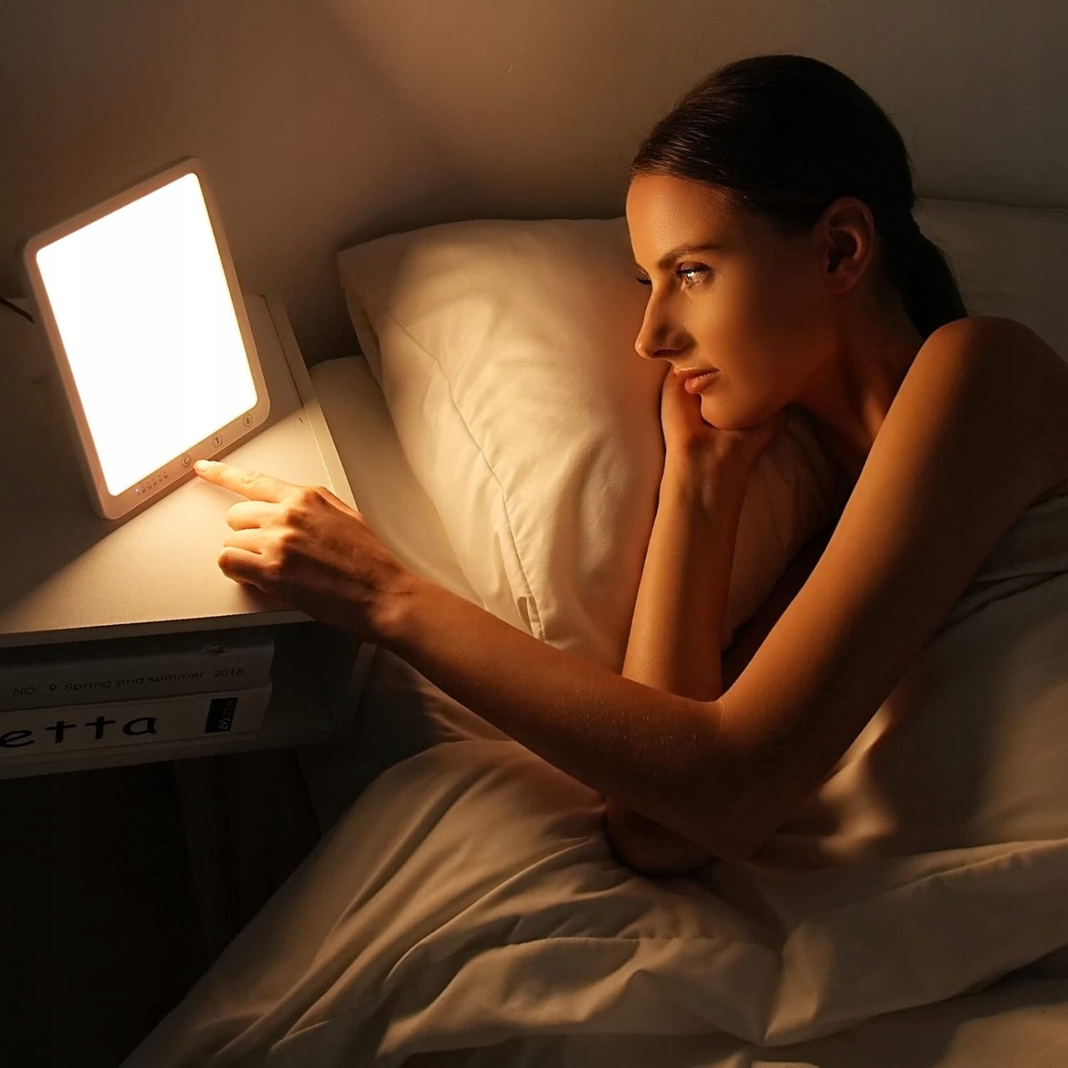 🌞Ampy для світлоротерапії була розроблена для темної осені та зими. Люкс. яскравість. Перший - це кольорова температура від теплого до холодного білого (3 рівні від 3000 до 6500 К), третій рівень - це таймер від 10 до 60 хвилин, корисно для читання перед сном. 15 см. Освітлення також має чітку підтримку. Премоструальний, психомоторний синдром гіперактивності з дефіцитом уваги, хворобою Альцгеймера, порушеннями харчування тощо, також може принести користь від світлової терапії.
