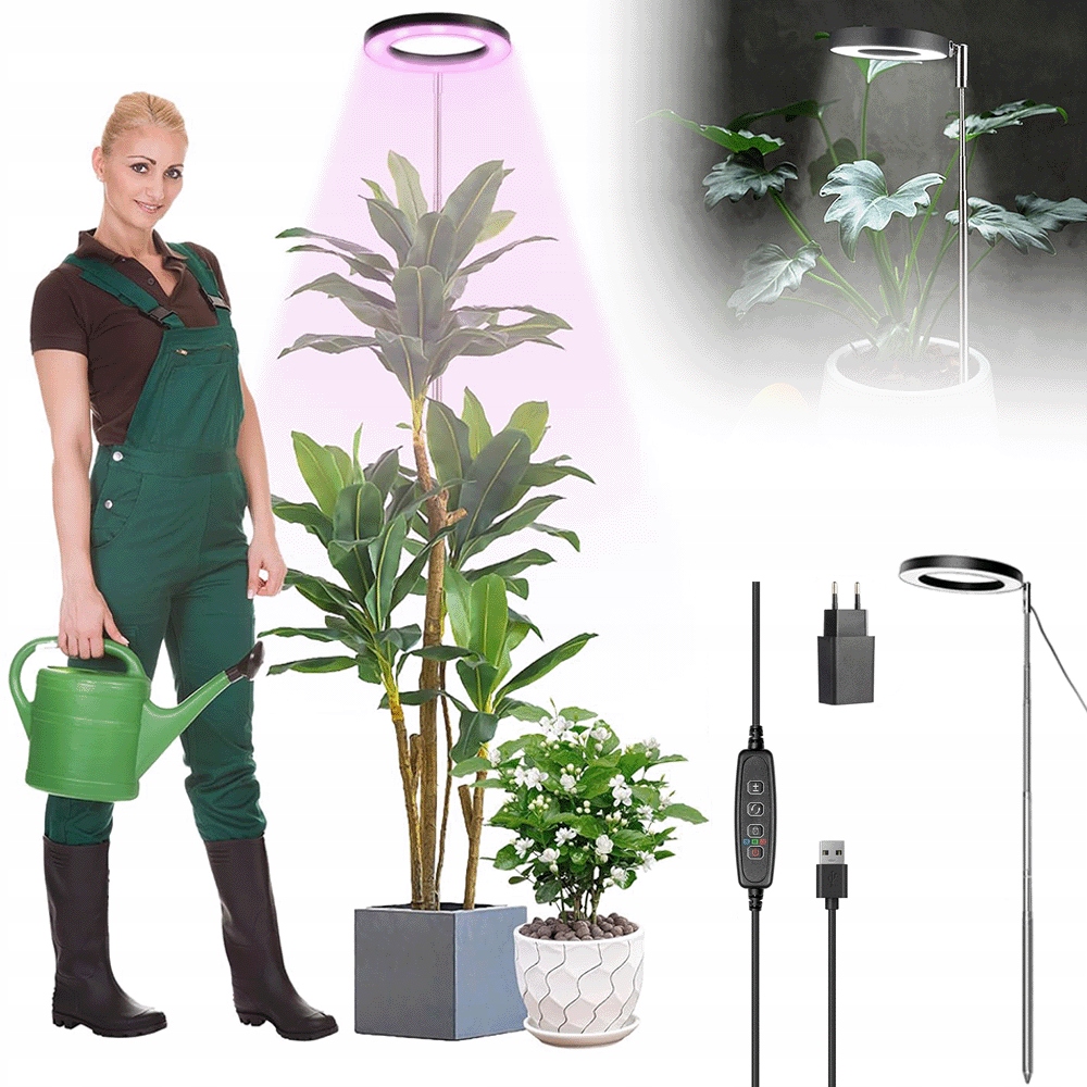 Лампа для кімнатного вирощування споживає лише 15 Вт і дуже ефективна (світловий потік: 800 лм). Він безпечний для рослин - не виділяє зайвого тепла. Живлення від адаптера USB (кабель 1,6 м) збільшує його універсальність. Керування здійснюється за допомогою зручного дротового пульта дистанційного керування.