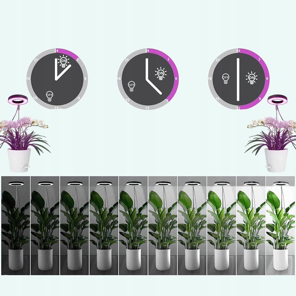 СВІТЛОДІОДНА ЛАМПА ДЛЯ ВИРОЩУВАННЯ РОСЛИН FULL SPECTRUM ANGEL RING TIMER ГНУЧКА ПІДСТАВКА