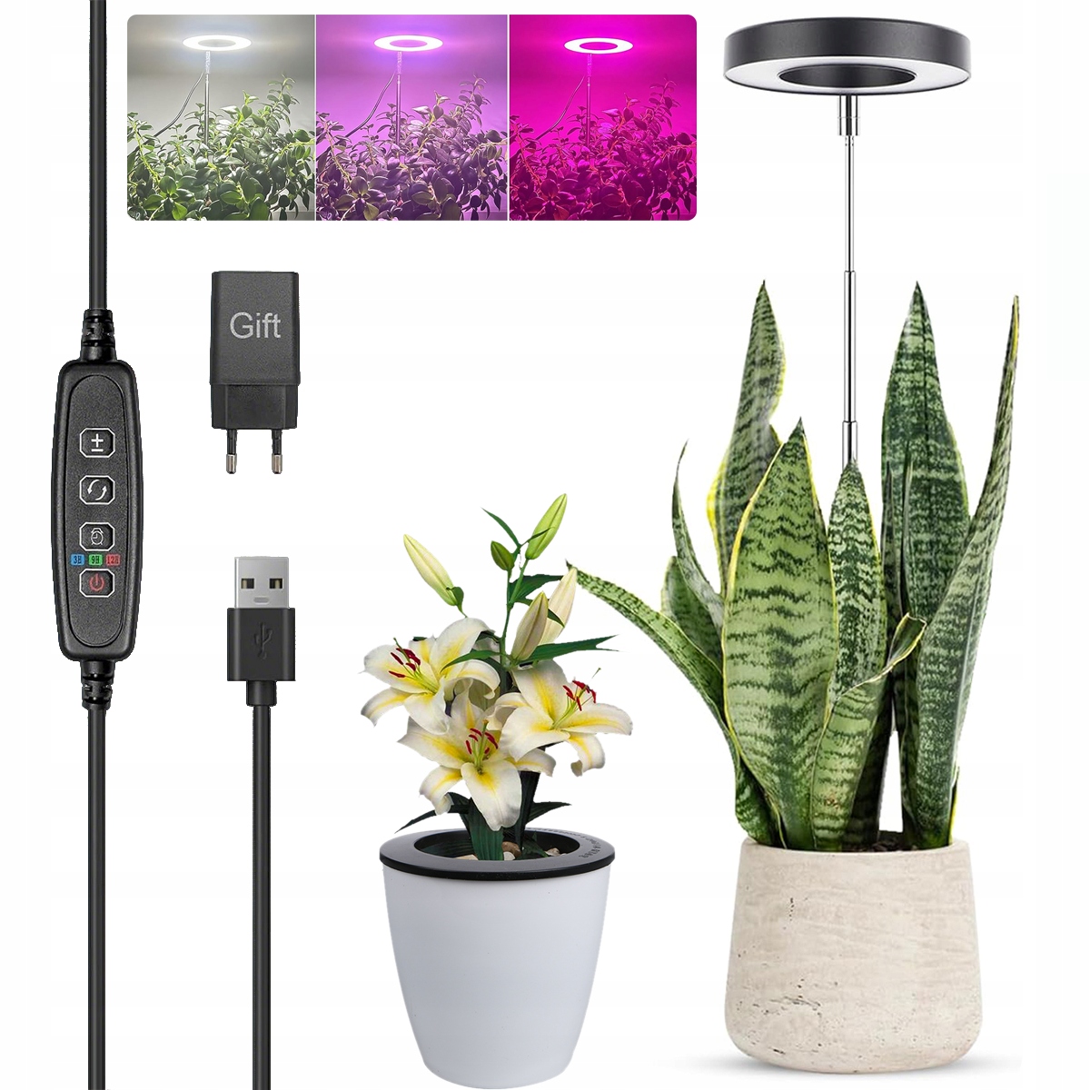 🍃🔆 Світлодіодне освітлення для рослин, повний спектр освітлення для кімнатних рослин, світлодіодна лампа для росту рослин із регульованою висотою, 3/9/12-годинний таймер із USB-адаптером, 3 режими освітлення та 9 рівнів яскравості🍃🔆