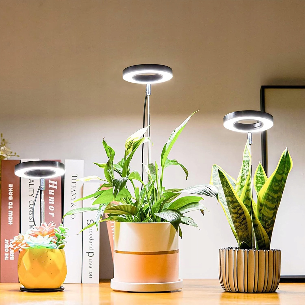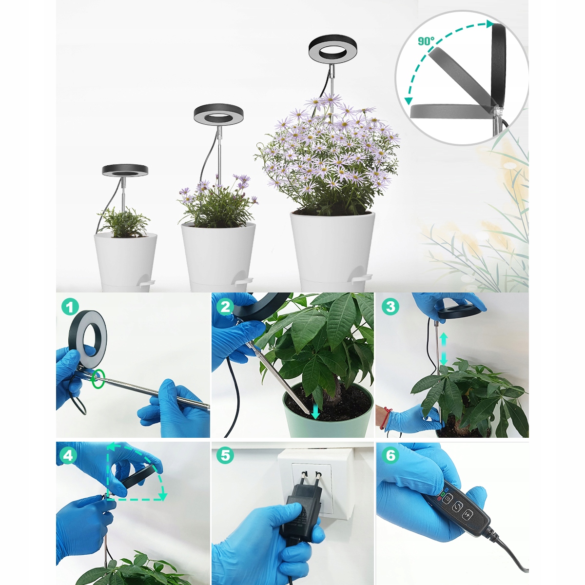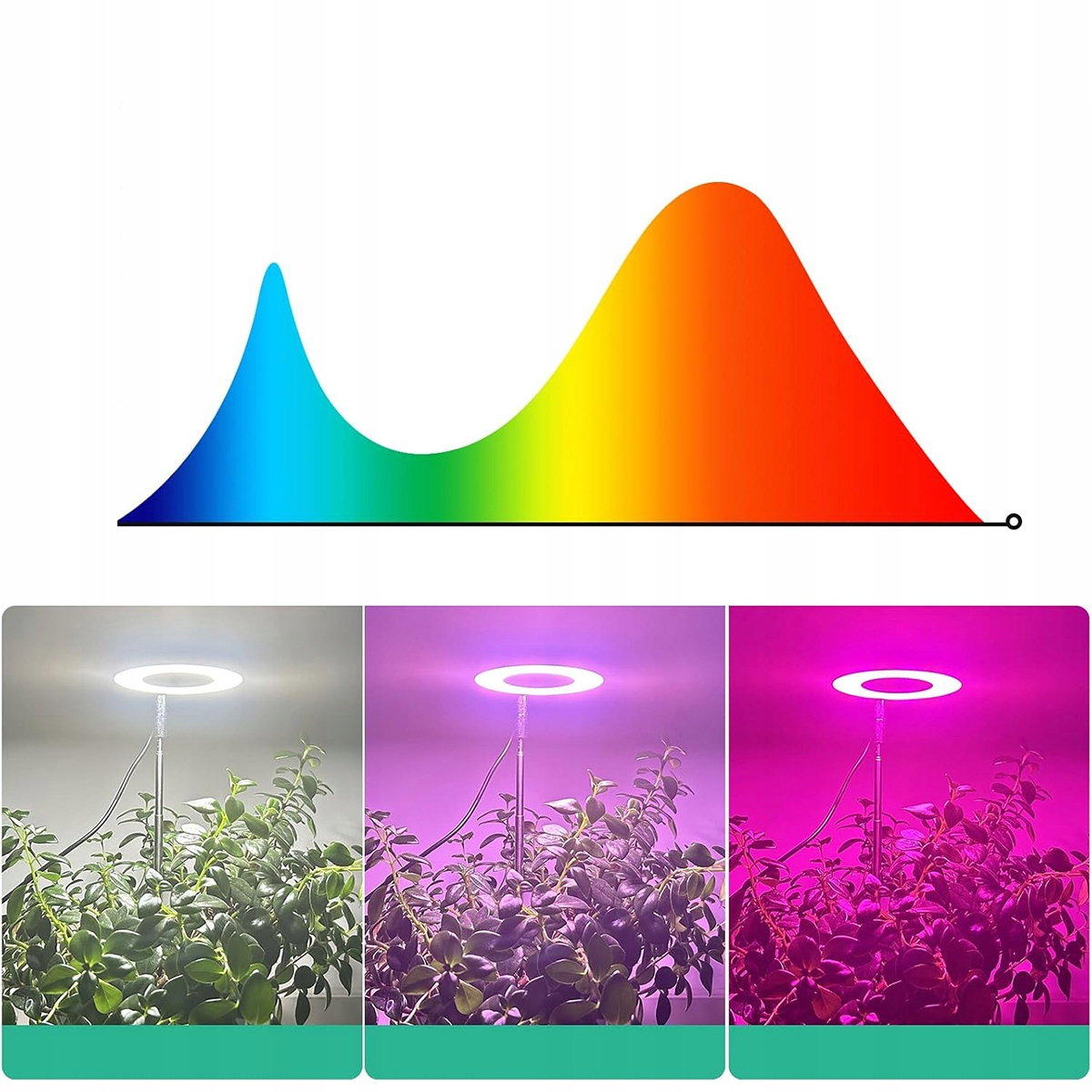 Наша лампа для рослин повного спектру, масив діодів, зібраних у коло, завдяки яким рослини краще поглинають світло та стають щасливішими. Крім того, він має 9 налаштувань яскравості, що регулюються (20%-100%), щоб відповідати різним типам рослин із різними вимогами до інтенсивності світла.