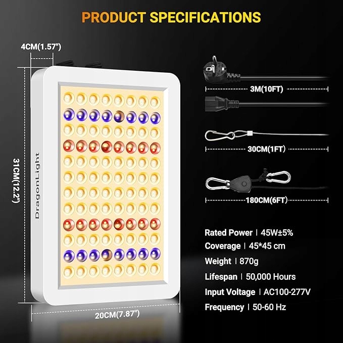 - Включає 3 -метровий кабель живлення в наборі - зручна установка навіть у більш високих наметах або теплицях.