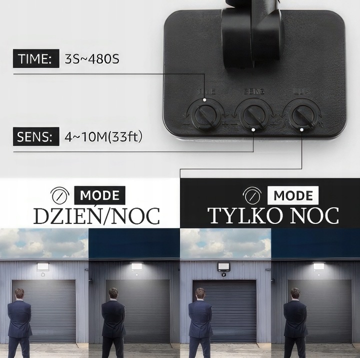 - три параметри налаштування: час освітлення, чутливість до сутінків, чутливість до руху