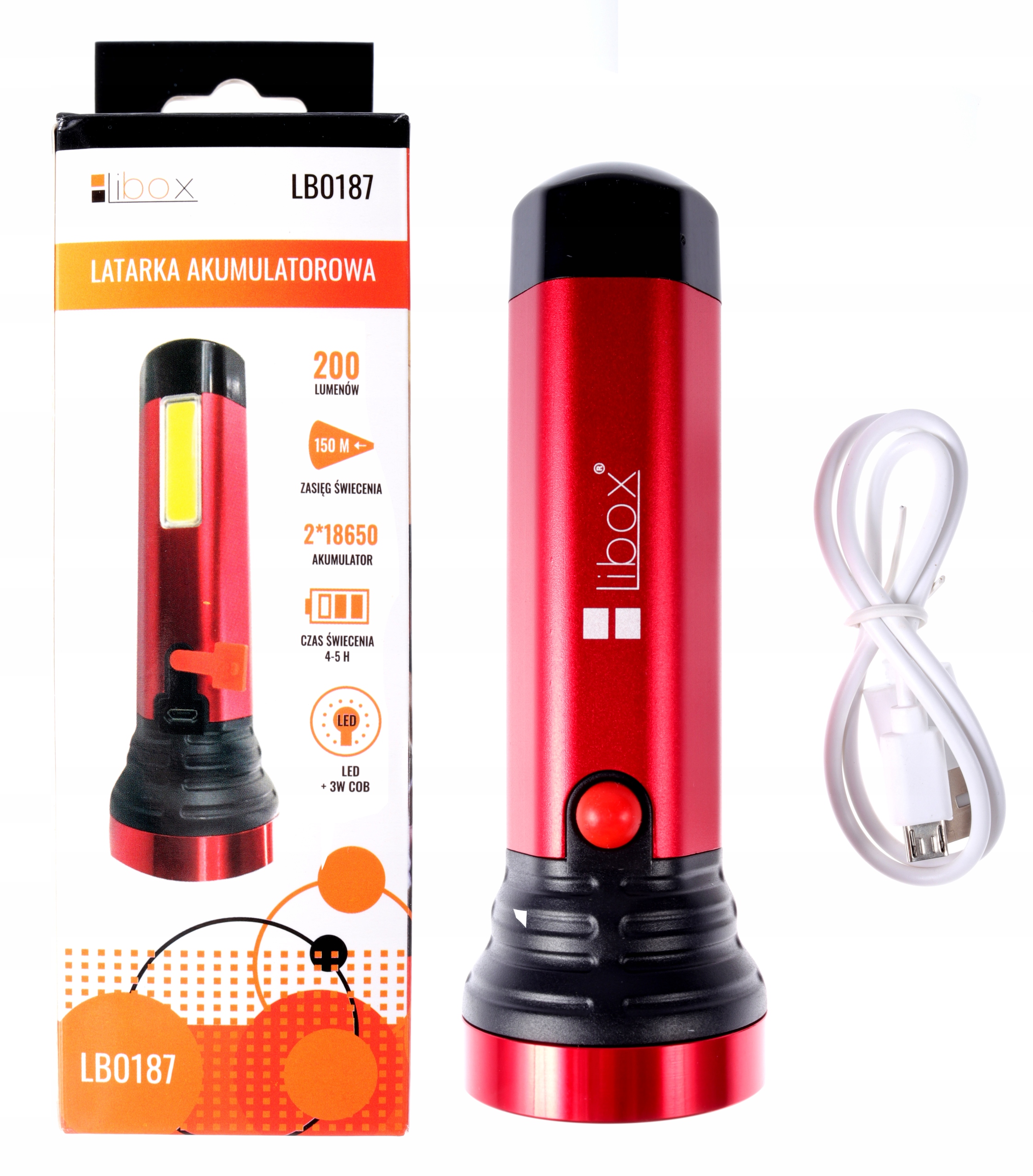 Акумуляторний ліхтарик LIBOX LB0187 COB+LED — невеликий ліхтарик, оснащений потужним світлодіодом. Це гарантує освітленість простору приблизно на 150 м. Завдяки вбудованому бічному діоду COB запропонований ліхтарик може освітлювати кімнату, розташувавши його вертикально.