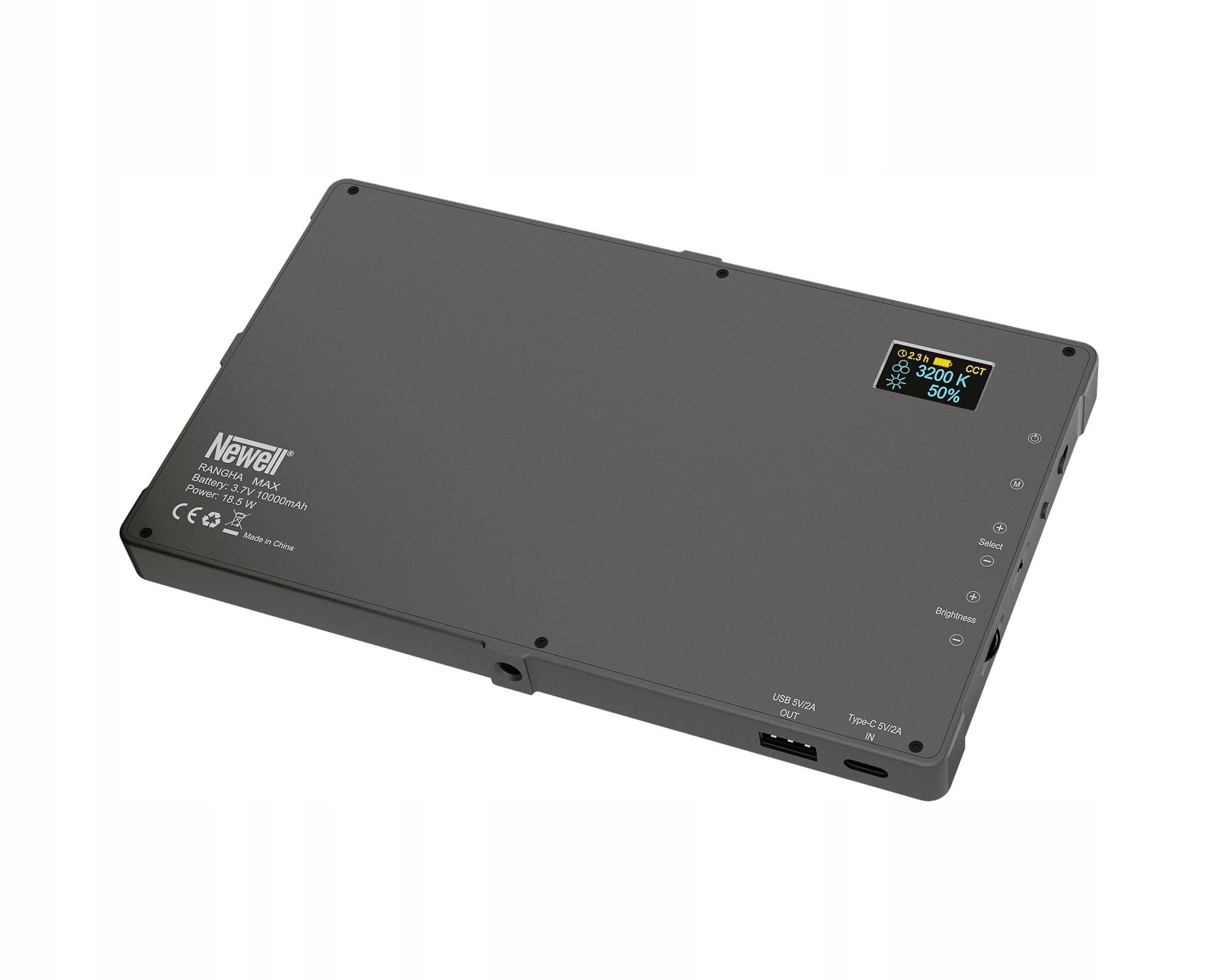 Світлодіодна лампа Newell RGB-W Rangha Max — це вдосконалена версія компактної панелі Rangha, яку оцінили фотографи та режисери. Невеликий і легкий пристрій пропонує світловий потік з максимальною потужністю 1650 люмен, регульовану колірну температуру в діапазоні 3200 К - 5600 К, а також палітру кольорів HSI з можливістю регулювання насиченості.