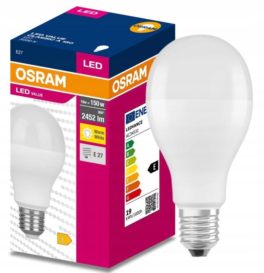 Просматривая «Світлодіодна лампа Osram VALUE 19W = 150W 3000K E27», вы можете быть уверены, что данный товар из каталога «Источники света» будет доставлен из Польши и проверен на целостность. В цене товара, указанной на сайте, учтена доставка из Польши. Внимание!!! Товары для Евросоюза, согласно законодательству стран Евросоюза, могут отличаться упаковкой или наполнением.