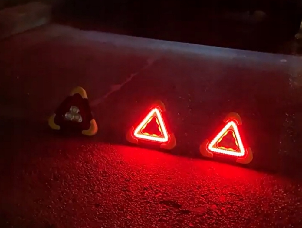 Трикутник займає дуже мало місця в автомобілі. Перевагою виробу є дуже проста і швидка збірка. З великої відстані він сповіщає зустрічних водіїв про майбутню поломку чи аварію.