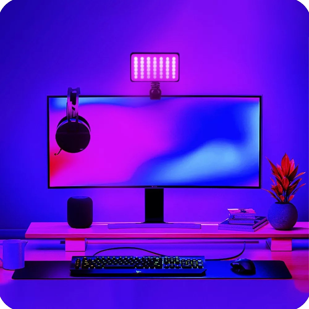 ✔️ RGB лампа від GearPro дає чудові можливості налаштування світла. Ви можете встановити один із 360 кольорів, змінити баланс білого та інтенсивність освітлення або вибрати один із 20 автоматичних режимів спеціальних ефектів. Ви можете точно налаштувати все на чіткому цифровому дисплеї.