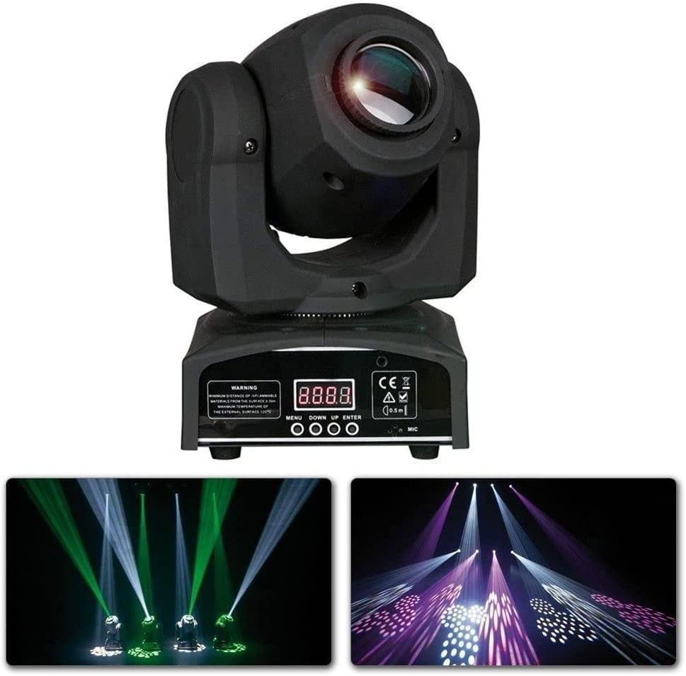 Високоякісний матеріал: ця сценічна лампа зі світловим ефектом рухомої голови виготовлена з легкого, міцного та зносостійкого алюмінію. Вбудований вентилятор прискорює відведення тепла, підтримує постійну температуру і продовжує термін служби. Низький звук.