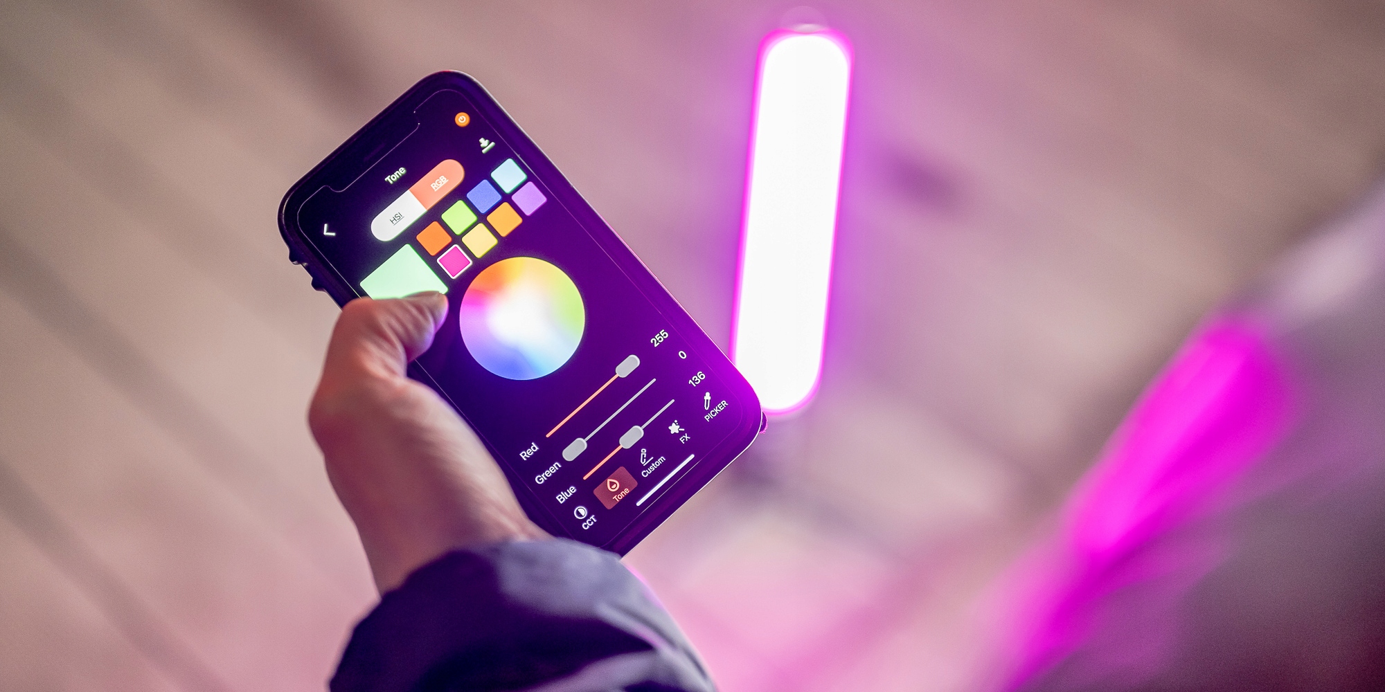Світловий меч Sirui T60 – RGB, WB (2500 K – 8000 K) – це пристрій, створений для творчих творців, які люблять грати з кольорами та використовувати їх для створення унікального атмосферу на своїх фотографіях, відео про продукти, відеоблогах і музичних відео. Лампа дозволяє змінювати колір, інтенсивність і насиченість світла всередині HSI простору. Також є широкий діапазон регулювання колірної температури (CCT) - від 2500 K до 8000 K.
