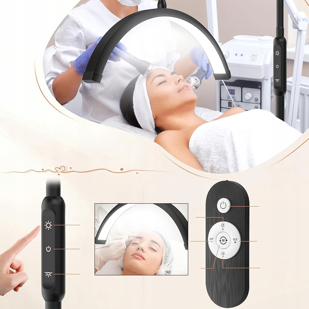 18-дюймова лампа краси у формі півмісяця для манікюру та педикюру з функцією регулювання колірної температури та яскравості + пульт дистанційного керування Три колірні температури / п’ять рівнів яскравості / чорний колір – європейський стандарт