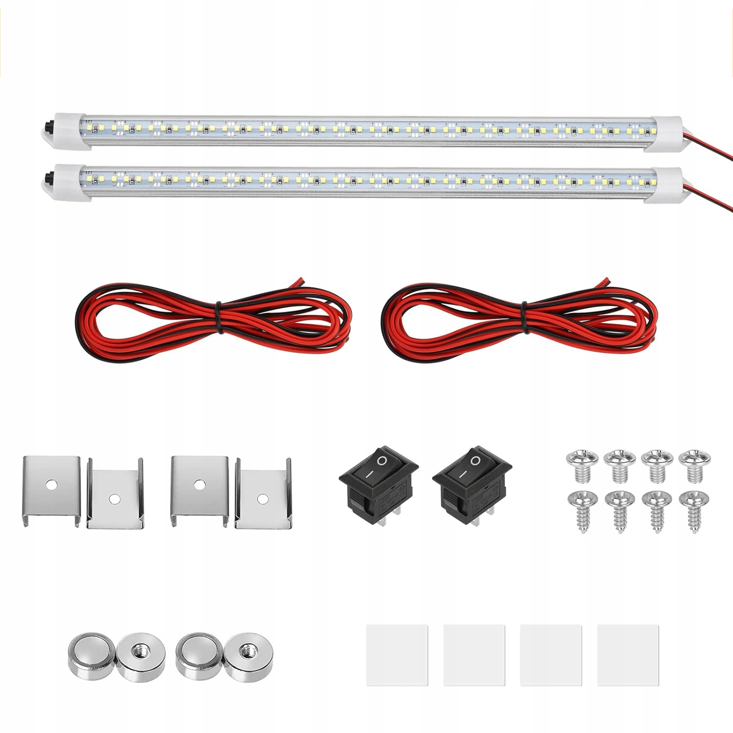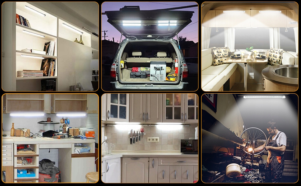 Крім високовольтної лампи 110В, можна вмикати тількилампи 3Вт і 12В. Основа з алюмінієвого сплаву та мікросхема низької напруги забезпечують систему енергозбереження, особливо для автомобілів, причепів, кемперів, вантажівок, човнів, вантажівок, караванів, будинків на колесах, будинків на колесах, кабін, гаражів, вітрин, шаф. Кожна світлодіодна стрічка може працювати 30 000 годин.