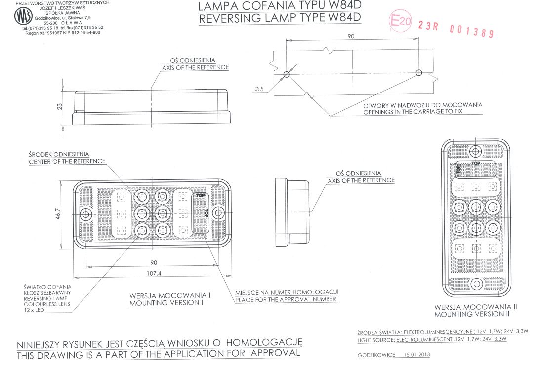 W84 (702) прямокутний світлодіодний ліхтар заднього ходу.