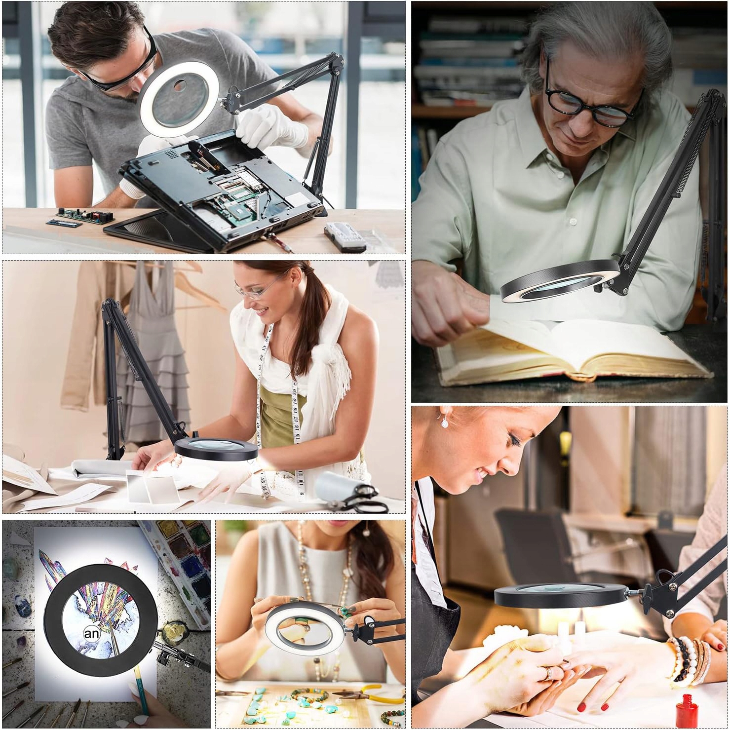 🔎 8-кратне збільшення - збільшувальне скло з підсвічуванням використовує оптичну лінзу високої роздільної здатності, щоб забезпечити чітке збільшене зображення без спотворень. 8-кратне збільшення надає професійну допомогу людям, які довго працюють крупним планом, і людям із поганим зором. Лінзи не викликають запаморочення та полегшують шиття, шиття, манікюр, різьблення, зварювання та багато іншого.