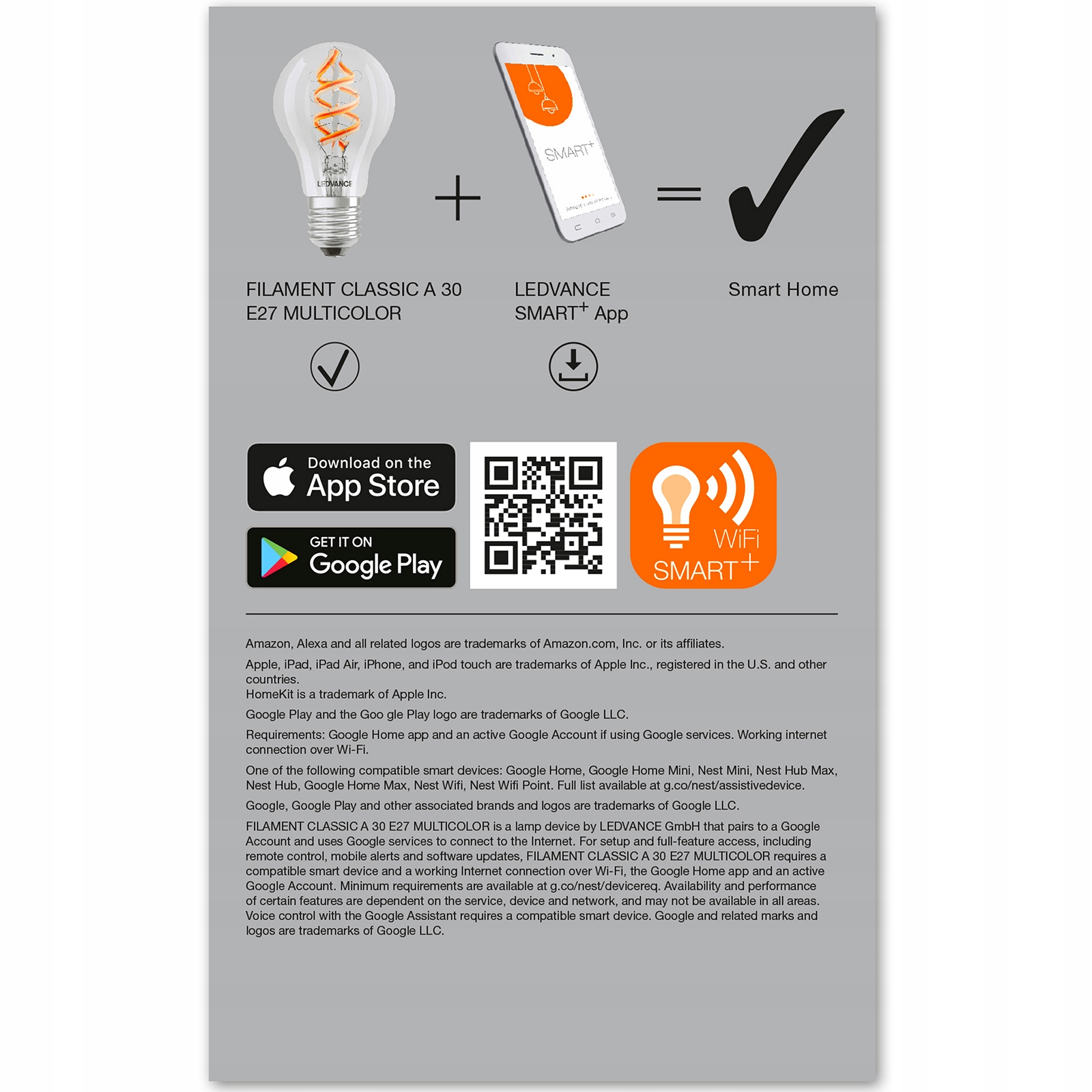- Контроль за допомогою програми ledVance Smart+ Wi -Fi (з принаймні Android 4.4 або iOS 9.0).