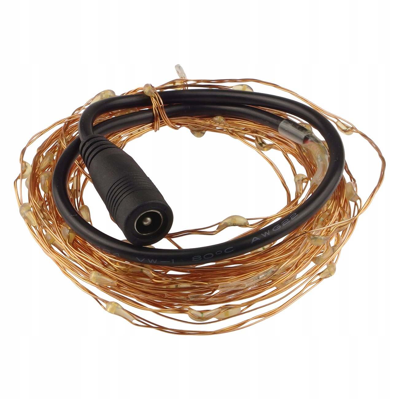 Світлодіодна смуга завдовжки 5 м зі 100 діодами у фіолетовому кольорі. Працює від напруги 12 В через роз'єм постійного струму 5.5x2.1 мм. Він був зроблений з дроту і може бути зігнутим у будь -якій формі. Він стійкий до погодних умов і адаптований для використання зовнішніх будівель.