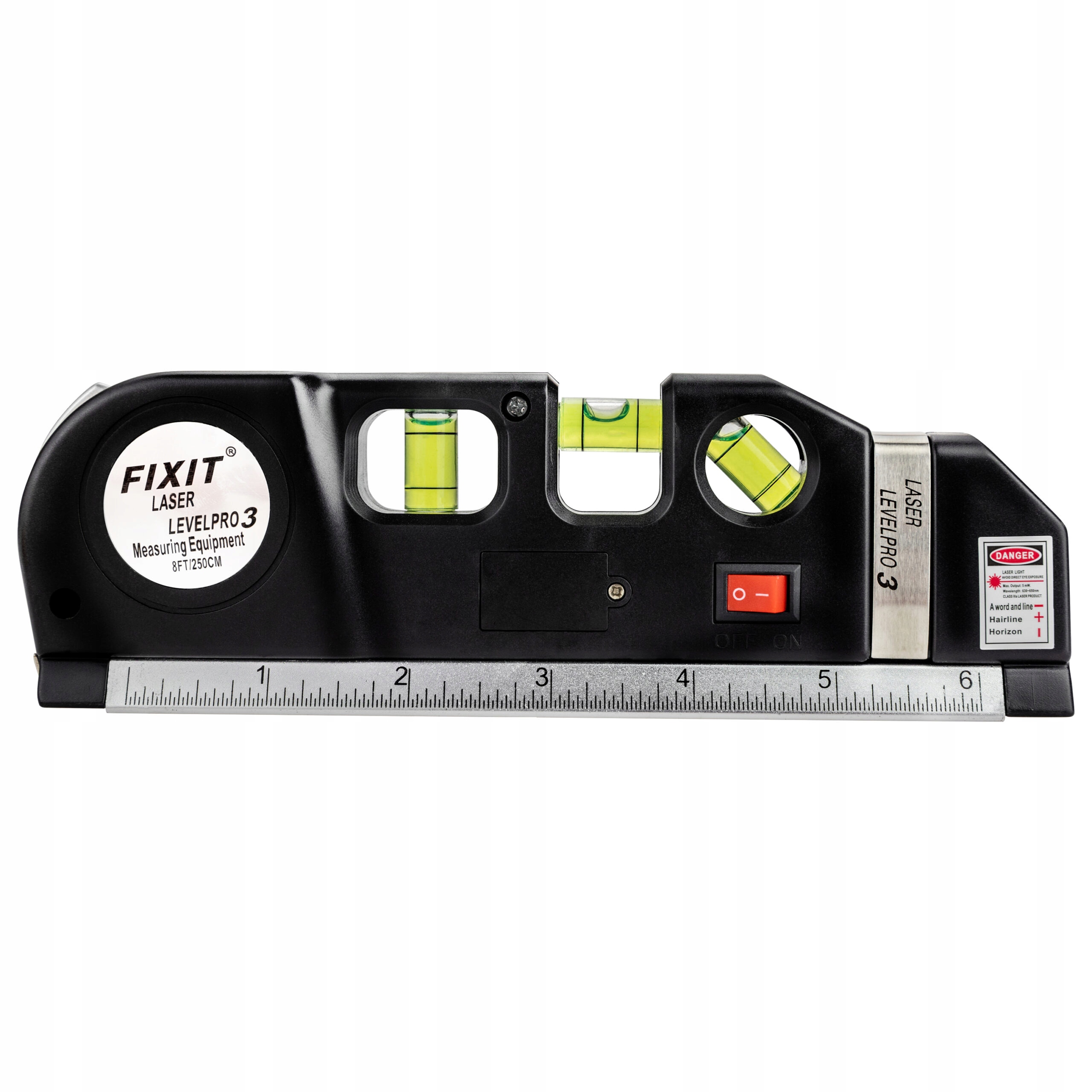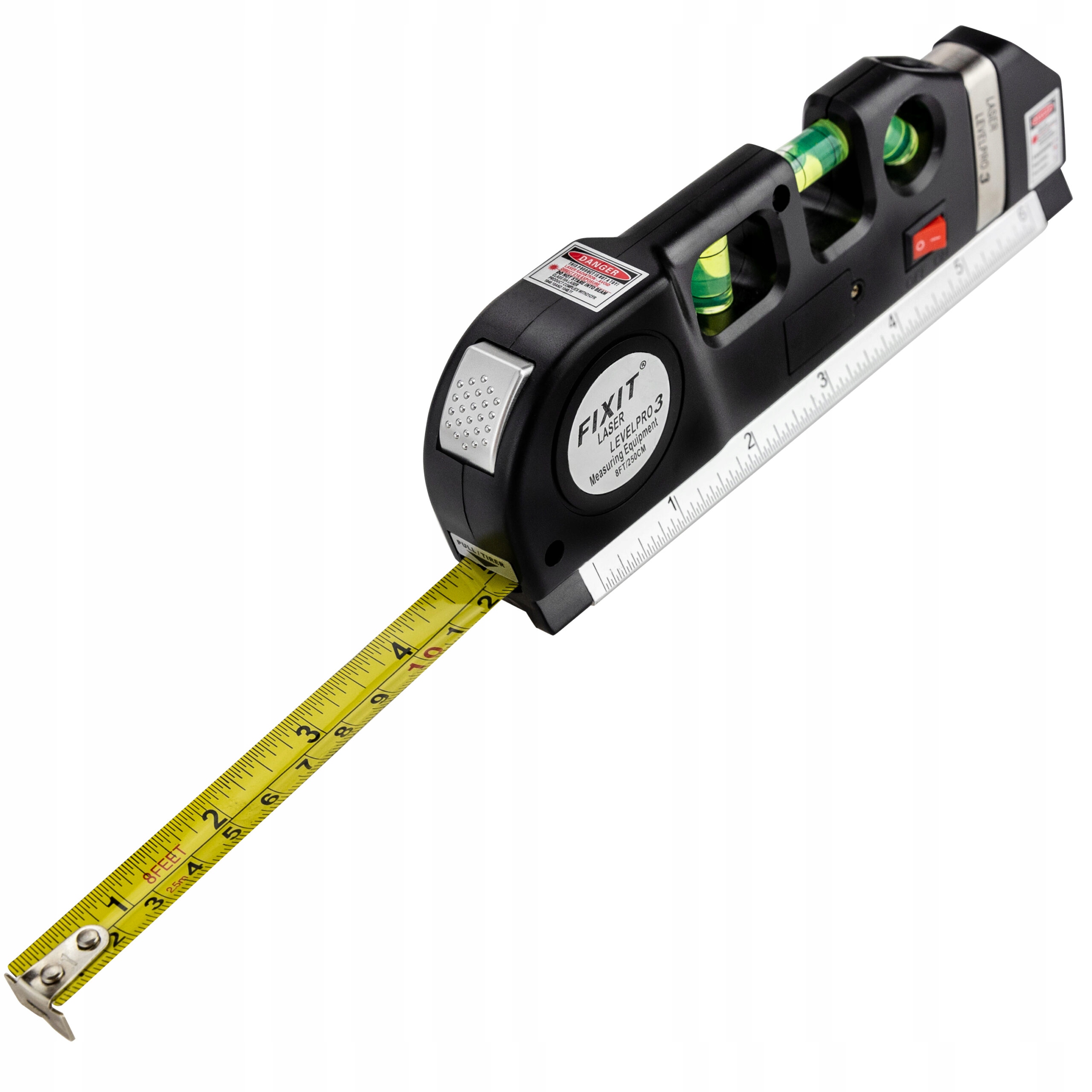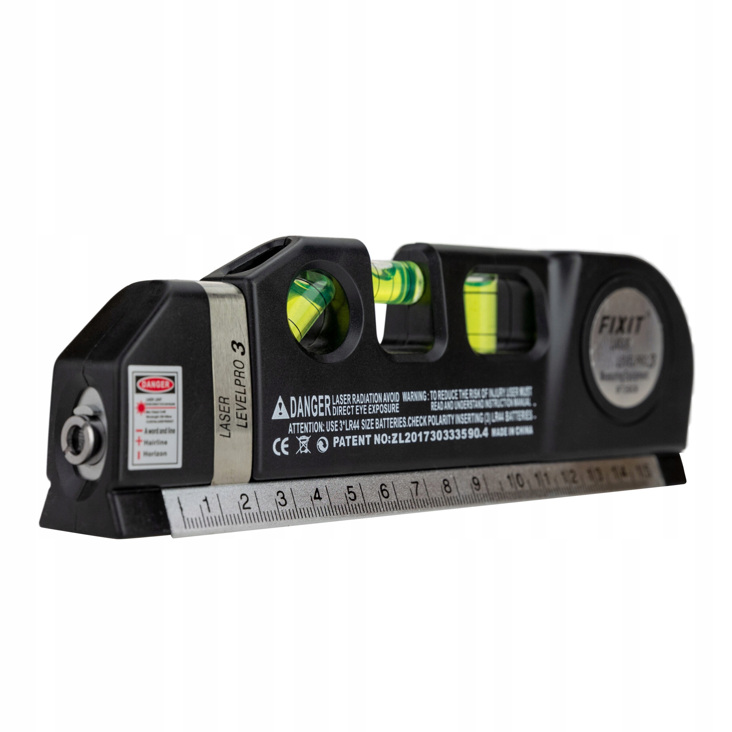 Пристрій випромінює червоний лазерний промінь, що дозволяє щоб визначити поперечну лінію, горизонтальну чи вертикальну на стінах, стелі чи підлозі. Ватерпасовий рівень оснащений 3 флаконами для полегшення позиціонування об'єктів - вертикально, горизонтально та під кутом 45°. Ватерпас має вбудований стандарт 15 міра см і >розсувна міра 250 см, яка полегшує вимірювання відстані між точками. Рівень має ергономічну форму і зручний у використанні. Живлення від 3 батарейок LR44(у комплекті, + 3 безкоштовно).