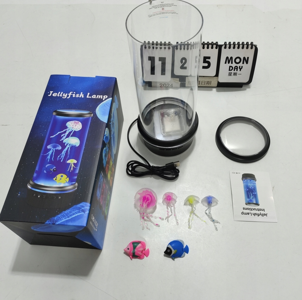 - Мініатюрна лампа у формі водної колони містить 4 медузи та 2 штучні риби, розмір становить 29*11*11 см, а пристрій має хороші властивості герметизації.
