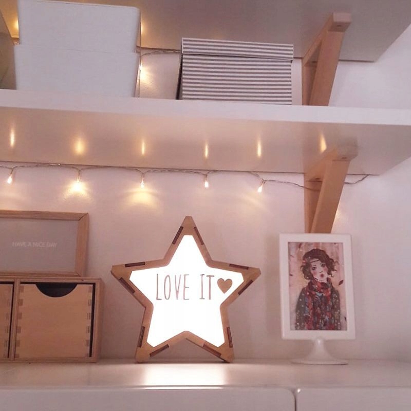 Світлодіодна ліжка з назвою для дітей на батареї USB-C дерев'яна зірка