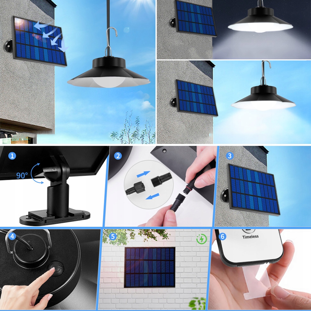 - Лампа та сонячна панель мають відокремлену структуру, оснащені 16,4 футів/ 5м. Гараж, у дворі, у підвалі, саду, у дворі, у внутрішньому дворику, коридорі, у парку, на ганку, проїжджій дорозі, стежці, вхідних дверях, на терасі, на наметі, на складі, інструментах, комунальних приміщеннях, на балконі, на горищі тощо