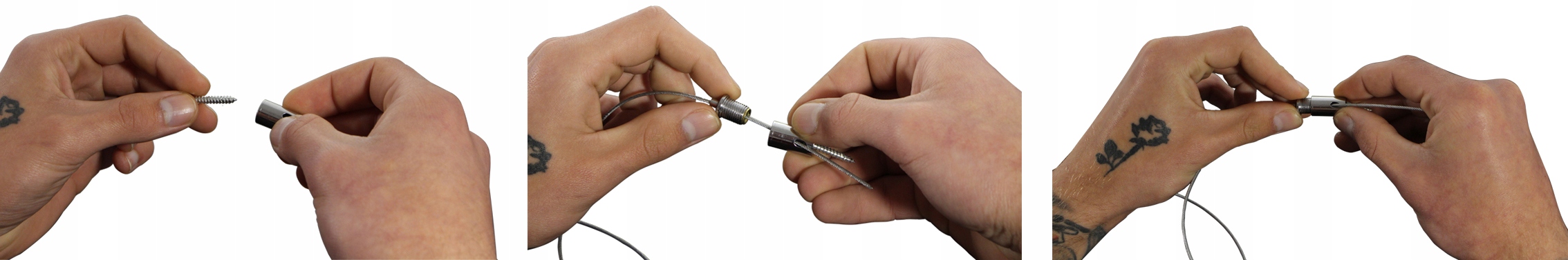 У набір входять універсальні кронштейни, призначені для кріплення безпосередньо до монтажної поверхні або підвішування на кабелях (не входять в комплект). Просто натисніть на гільзу, щоб відрегулювати довжину кабелю, а отже, і висоту самої лампи.