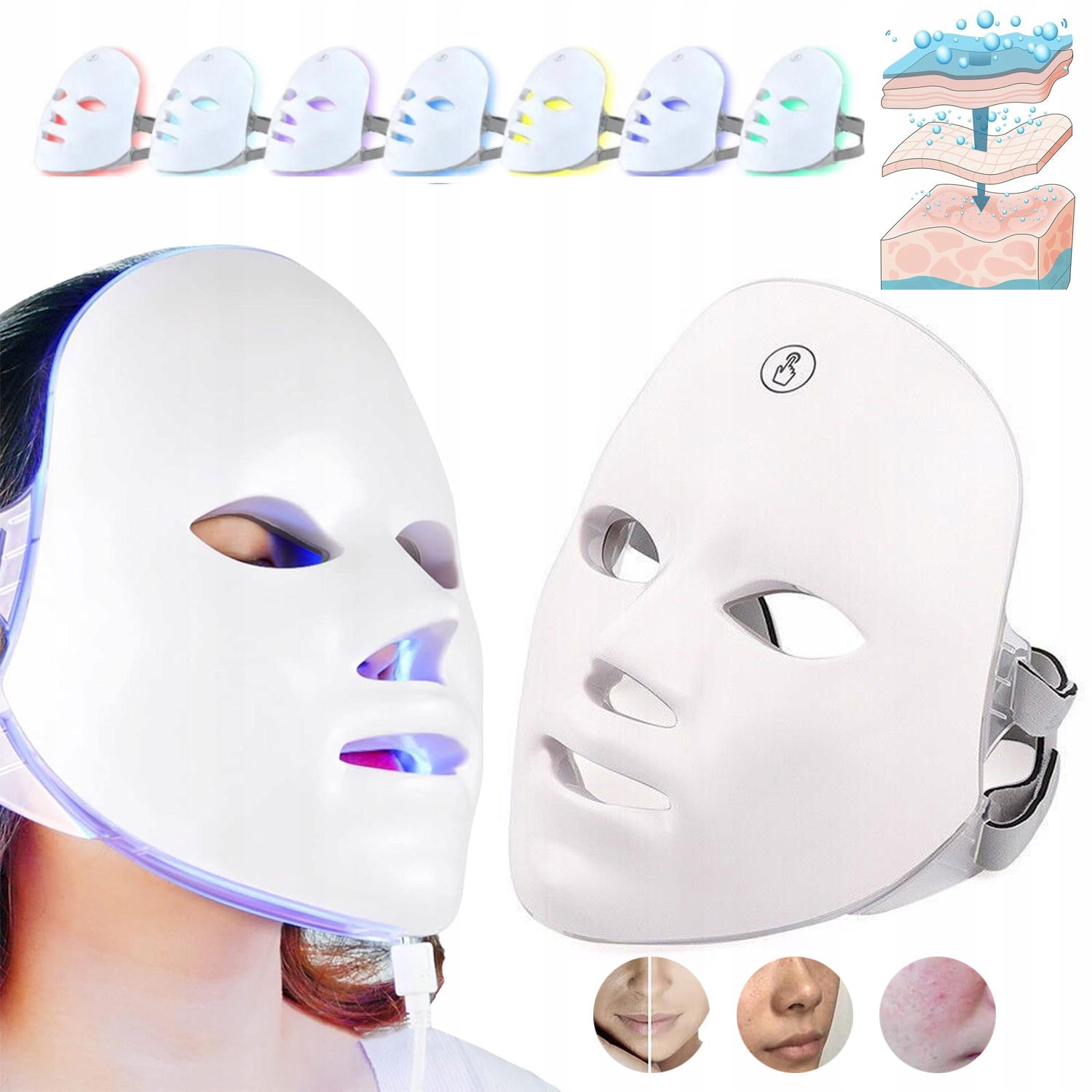 Світлодіодна маска для обличчя для світло -терапії на обличчі, легка терапія, 7 кольорів