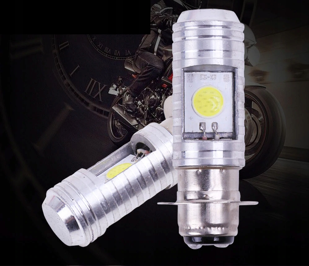 Лампа P15D з ближнім і дальнім світлом завдяки розташуванню діодів, як у традиційній лампі. Він світить вдвічі яскравіше, ніж традиційні лампи, які дають світло, подібне до ксенонових фар.