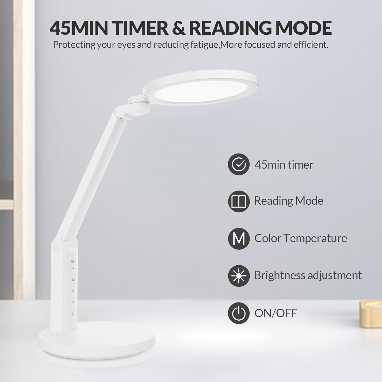 - Таймер на 45 хвилин: використовуйте очі з розумом, щоб уникнути втоми. Ефективний і цілеспрямований. Режим читання: Ця кнопка має постійну яскравість і колірну температуру, що підходить для використання в атмосфері читання. Просте управління, управління одним натисканням. Функція пам'яті: запам'ятовує колір і яскравість світла, яке використовувалося востаннє, і якщо ви не вимкнете живлення, ви зможете використовувати світло зручніше наступного разу.