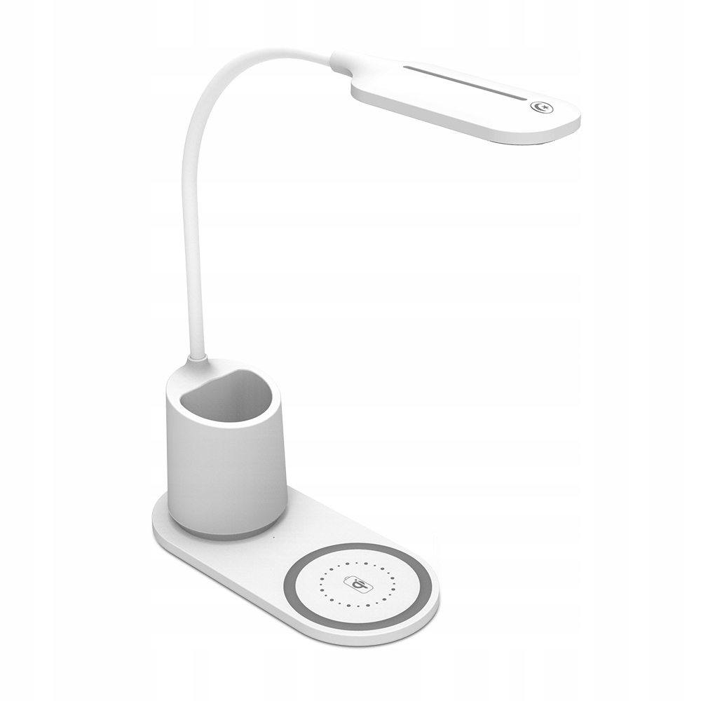Сучасна світлодіодна лампа із зарядним пристроєм QI, регулюванням кольору світла та тримачем для ручок.