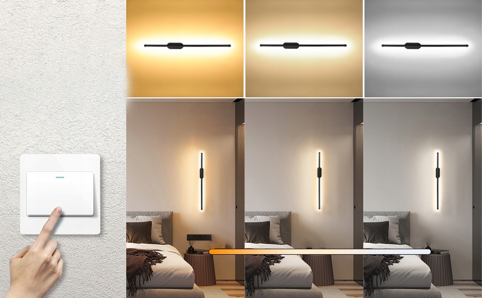 - 🌟 - 【3 кольорові температури та функція пам'яті】: Сучасна настінна лампа з високоякісною світлодіодною мікросхемою забезпечує більш рівномірне і міцне світло, широке світло. Ви можете змінити потрібну кольорову температуру за допомогою звичайного перемикача, натисніть 3000 к один раз, двічі 4000 к і три рази 6000 К. Настінна лампа має функцію пам'яті, після вимкнення та повторного перемикання, вона автоматично повернеться до останньої кольорової температури. 4 Їх тонкий чорний і вільний вигляд ідеально поєднується з сучасними стилями інтер’єру. Ця поздовжня настінна лампа з стрункою та мінімалістичною конструкцією характеризується дизайном і прекрасно привертає увагу у всій вітальні. 4 Містить інструкції та все обладнання для кріплення, що дозволяє швидко та простіше встановити. 4