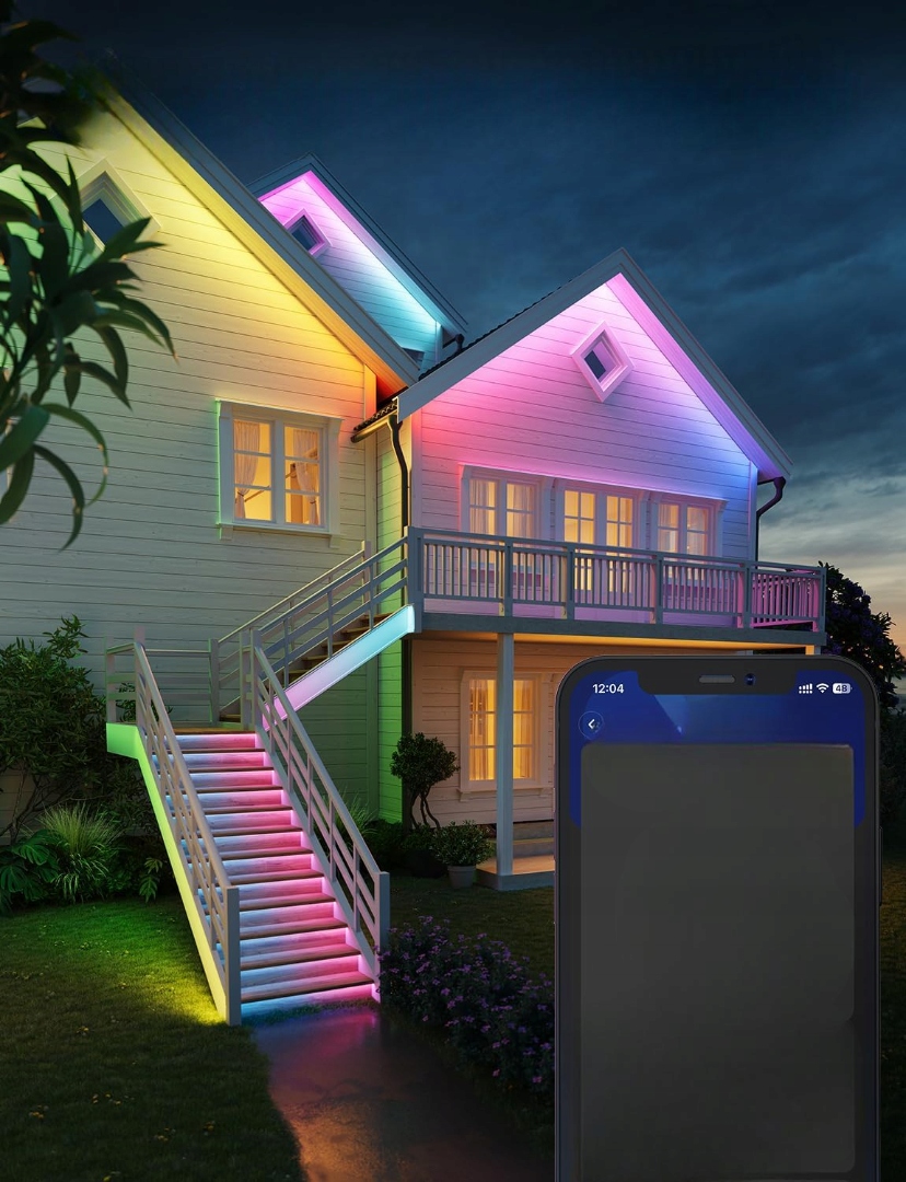 Установіть, налаштуйте та насолоджуйтесь розумними зовнішніми світлодіодними стрічками за допомогою простого керування через додаток. Встановіть таймери, виберіть кольори або сцени та налаштуйте рівні яскравості, щоб запланувати зовнішнє освітлення Govee відповідно до ваших щоденних потреб.