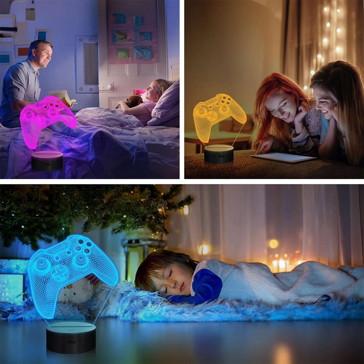 Нічник для дітей, 3D світлодіодний ігровий світильник, 16 кольорів, зміна кольору за допомогою дистанційного керування, кімнатний нічник з геймпадом, подарунок на день народження чи Різдво для любителів ігор, дітей, хлопчиків, чоловіків