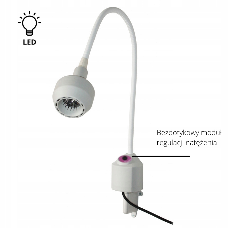 Безтіньовий медичний світильник FLH-2 LED має гнучкий, стійкий кронштейн типу «гусяча шия», що дозволяє точно освітлювати досліджуване поле. Світло в світлодіодному світильнику FLH-2 складається з 3 світлодіодних модулів потужністю 3 х 10 Вт кожен (еквівалентно висококласному галогену 50 Вт). Завдяки спеціальному безконтактному перемиканню безтіньової лампи ми виключаємо передачу мікроорганізмів (перехресні інфекції). Додатковою перевагою лампи є безконтактне регулювання яскравості підходом до руки в діапазоні 10%-100%.
