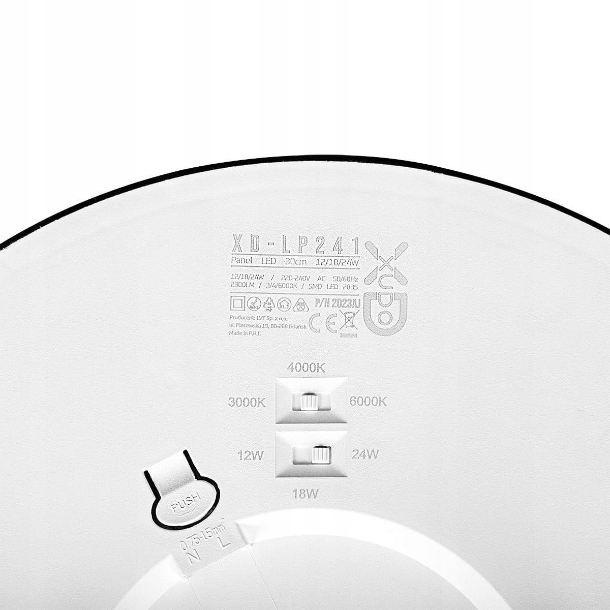 Світлодіодна панель 8-в-1, ідеально підходить для прихованого та поверхневого встановлення. Завдяки сучасному дизайну і функціональності панель ідеально впишеться в будь-який інтер'єр, забезпечуючи відмінні параметри освітлення. Можливість вибору температури світла (3000K, 4000K, 6000K), щоб ми могли налаштувати освітлення відповідно до наших потреб. Можливість вибору потужності 12 Вт, 18 Вт або 24 Вт дозволяє регулювати інтенсивність освітлення відповідно до ваших індивідуальних потреб. Отвір для прихованого монтажу: Ø65 ~ 240 мм (регулюється від - до).
