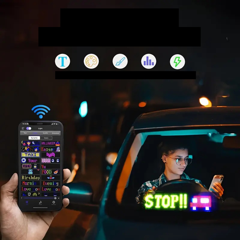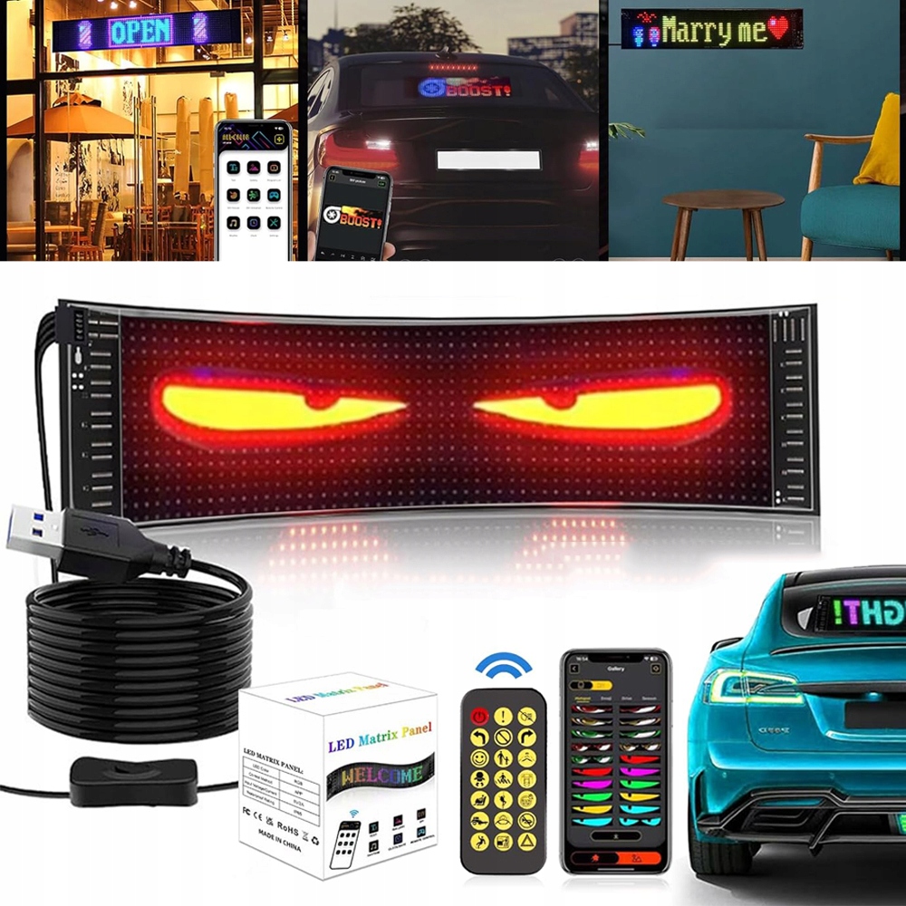 ✨✨ Запропонована світлодіодна таблиця -одна -a -kind світлодіодна панель може відображати фотографії, анімацію або поточні тексти, показуючи людям рекламний ефект, використовуючи цей прокручений світлодіодний таблиця з розмірами 16 x 96 пікселів. Світлодіодні матриці - Панель світлодіодної матриці складається з високоякісної гнучкої конструкції дошки і може бути вільно згинається та складений. Світлодіодна пластина 5 В/2 А з кабелем USB довжиною 4,5 м для джерела живлення та клейкої стрічки до волі в машині. Це забезпечує безпечне використання на лобовому склі автомобіля та задньому вікні.