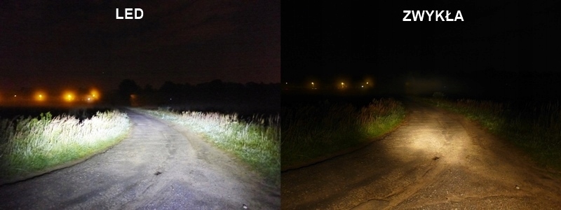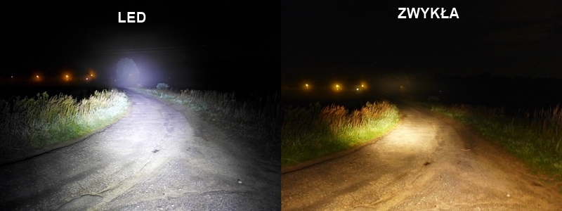 Нижче ми наводимо порівняння підсвічування двох світлодіодних ламп і лампи в скутері Fighter (WS 50, Ranger). тощо) з 35/35 Вт у режимах ближнього та дальнього світла.