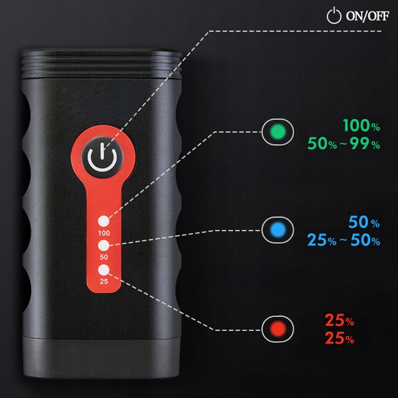 Три світлодіоди показують, наскільки заряджена лампа, тож ви зможете запобігти неочікуваному розряду та знатимете, коли батарея заряджена.