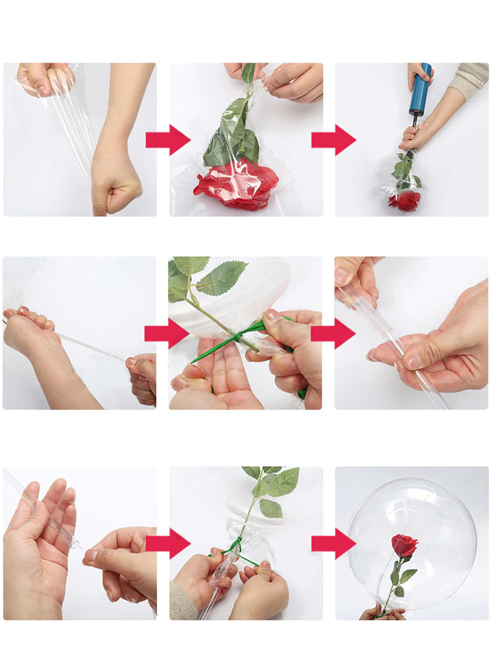 LED ПОВІТРЯНА КУЛЯ З ТРОЯНДОЮ В СЕРЕДИНІ ДЛЯ НЕЇ ТРОЯНДА В ПОВІТРЯНІЙ КУЛІ