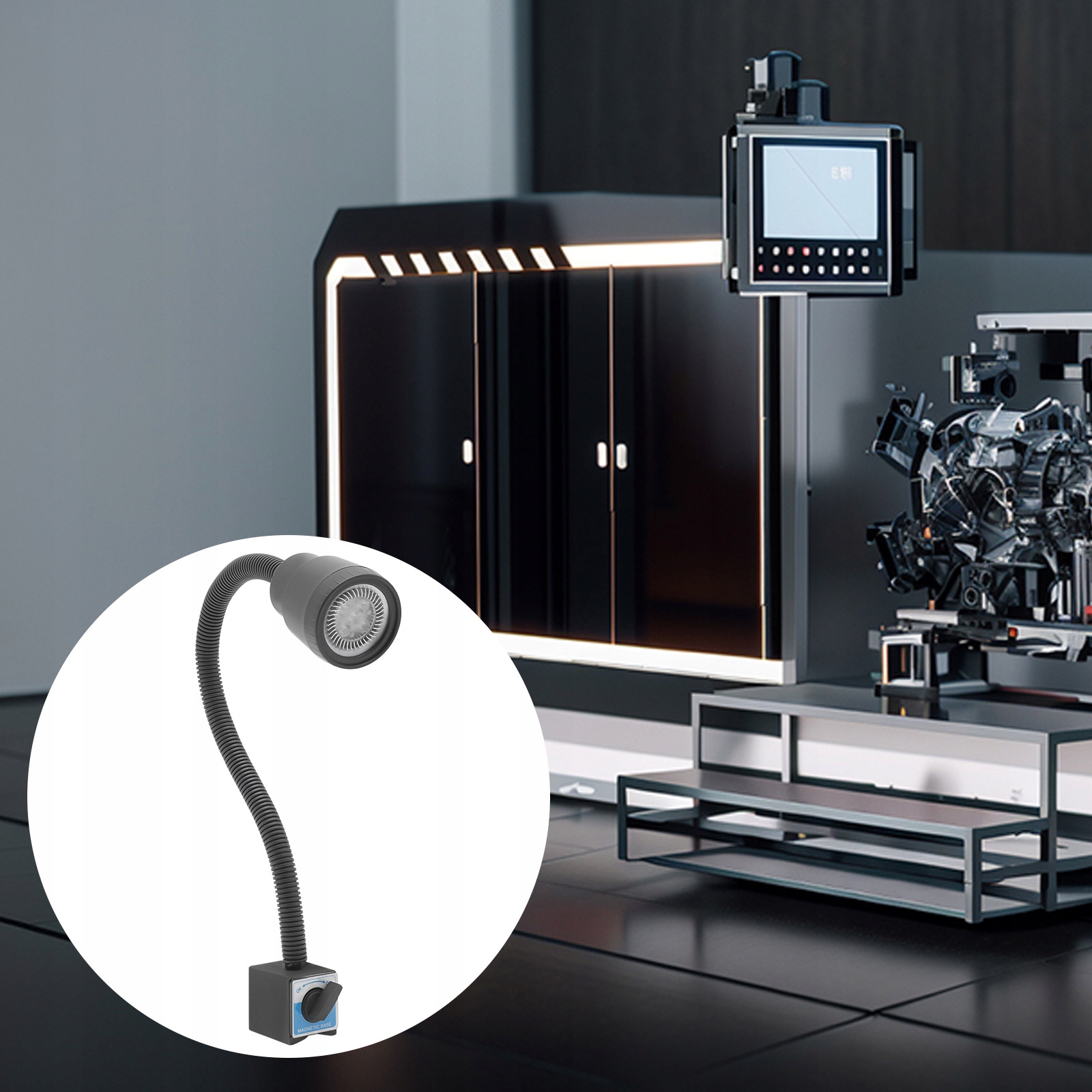 Гарне освітлення забезпечує хорошу обробку. Наш робочий ліхтар машини має магнітну основу та конструкцію шланга, що дає вам можливість розташувати його там, де вам потрібно, і забезпечити освітлення. Світлодіодне джерело світла має чудові світлові ефекти, забезпечуючи чітку видимість у робочій зоні. Завдяки компактним розмірам і високій функціональності цей продукт стане ідеальним партнером для освітлення вашої майстерні.