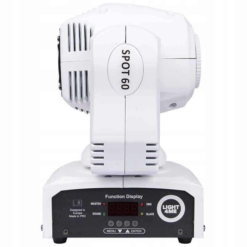 Light4Me Mini Spot 60 MKIII - це висока якість виготовлення та використаних матеріалів. На задній частині корпусу рефлектора є розетка живлення та вхід і вихід DMX. У передній частині знаходиться панель управління, яка складається з світлодіодного дисплея та чотирьох кнопок (Меню, Вгору, Вниз, Вхід). Це забезпечує просте та інтуїтивно зрозуміле керування пристроєм. ✅Spot пропонує нам 4 режими роботи: