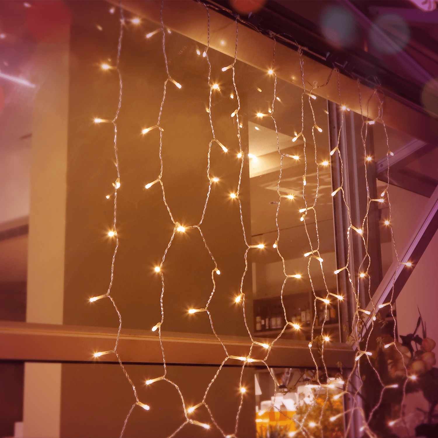 200 LED світлова завіса з кабелем 2mx2m представляє класичний дизайн, який забезпечує приємну атмосферу в кожному куточку будинок або тераса. Зручний і простий у використанні, оскільки його потрібно просто підключити до електромережі, і завдяки IP44 він може працювати на відкритому повітрі в критих приміщеннях.